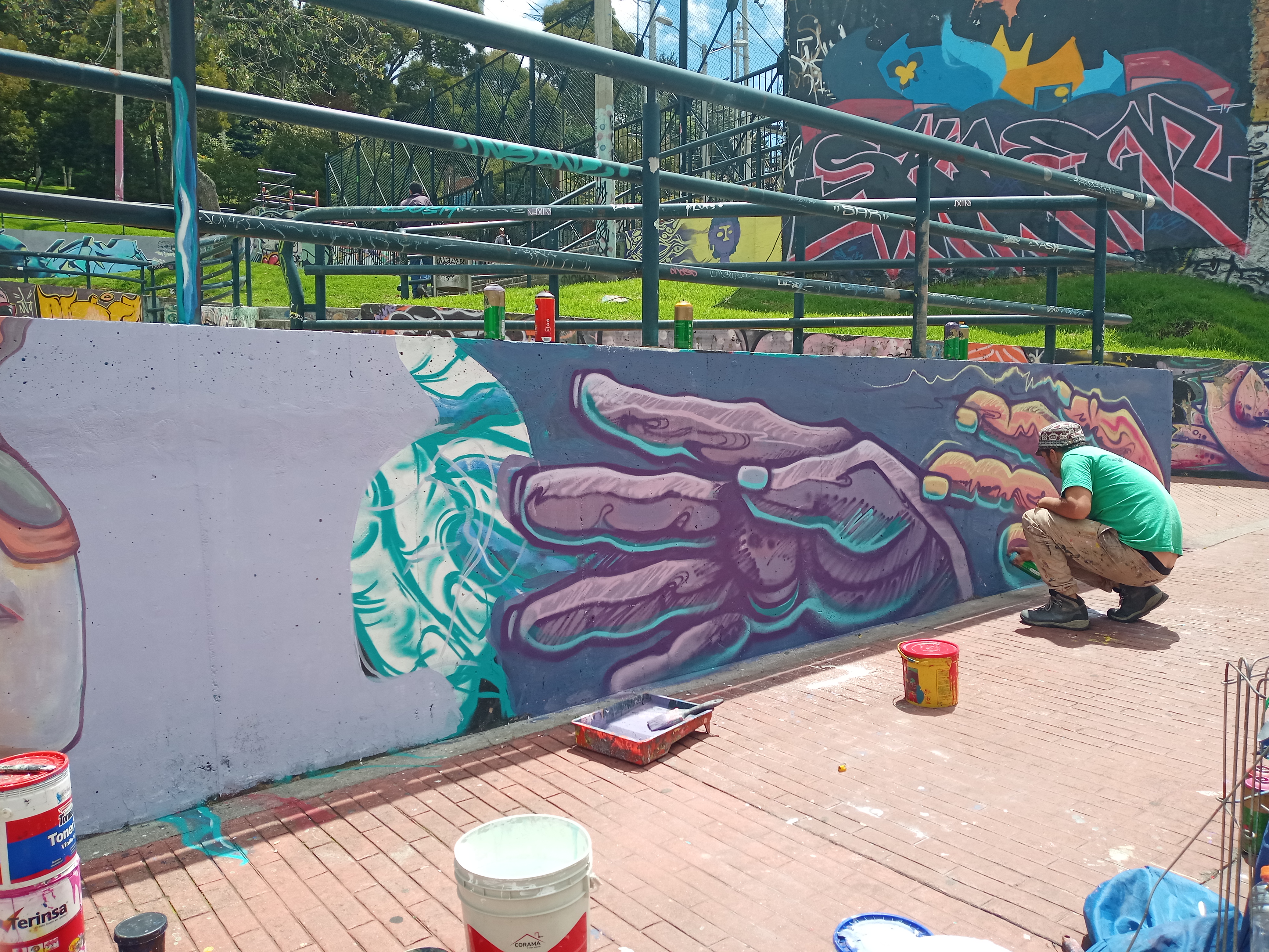 Retrato del maestro Rodez (Nómada+Raíz) Pista de patinaje Parque La Concordia, Bogotá. 2024.